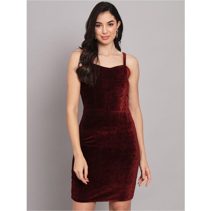 Black Solid Bodycon Dress Sweetheart Neck Sleeveless Knee Length Velvet Fabric Perfect for Party Occasions | Size & Fit: The model (height 5'8) is wearing a size S | Material & Care: 100% Premium Velvet Fabric. Wash as per tag. | Specifications: Shape: Bodycon | Neck: Shoulder Straps | Length: Knee Length | Sleeve Length: Sleeveless | Sleeve Styling: No Sleeves | Knit or Woven: Knitted | Hemline: Straight | Number of Items: 1